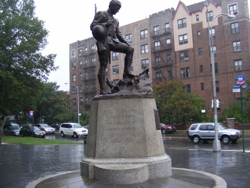 Американцы участвовали в 1917–1918 годах Первой мировой войны. После ее завершения многочисленные общины заказывали статуи юношей в честь местных героев. Одна из девяти таких статуй, установленных в парках Нью-Йорка, была заказана для Richmond Hill War Memorial. Интересно, что пехотинцы, вовлеченные в бои Первой мировой войны, были очень молодыми. Их средний возраст составлял 25 лет. На церемонии освящения мемориала в 1925 году комиссар парков Куинса Альберт К. Беннингер принял памятник от имени города, а саму скульптуру открыла госпожа Матильда Берлинг – президент Ассоциации матерей Ричмонд-Хилла.